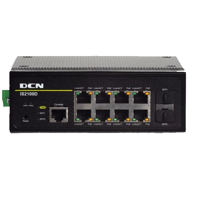 | IS2100D-2GF8TX-P | IS2100D-2GF8TX-P 卡轨式POE工业以太网交换机,(8个百兆电口+2个千兆SFP口) 全部电口支持最大30W (802.3at标准)供电,最大PoE供电功率180W |