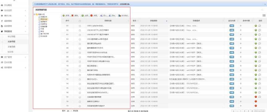 美高梅美高数码DCSSA日志审计系统除了等保合规场景之外,还有广泛的应用领域,在恶意软件检测、网络攻击检测等方面也能发挥很好的效果,是一款网络威胁告警利器。在运行过程中,系统充分利用已经内置的场景策略,一旦日志信息中出现关键字,系统将会进行统计,超过设定的阈值就产生告警,相关策略提前预置,可以根据业务实际进行灵活调整。